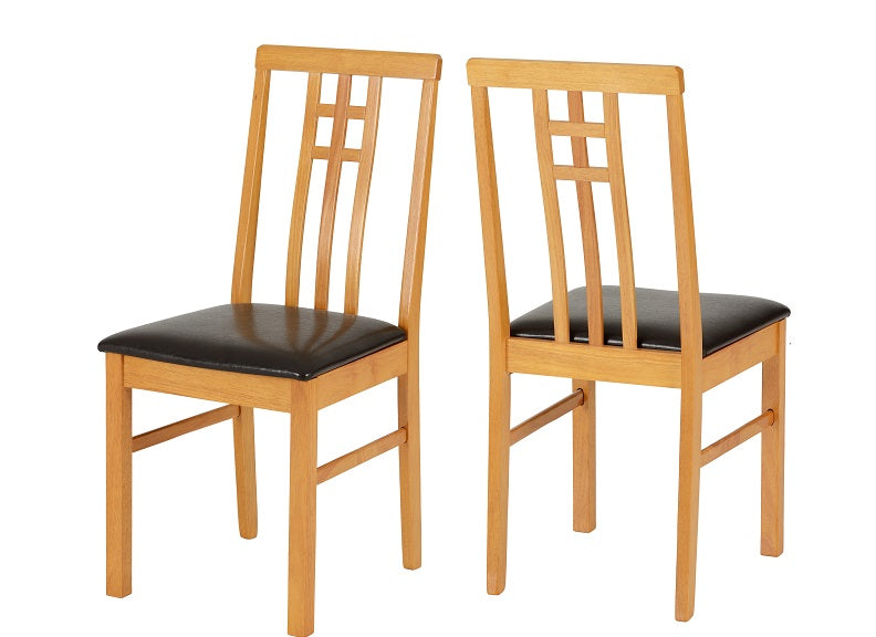 Vienna Vertically Slated Dining Chair – a light oak & particle board veneer dining chair with faux leather seat pad. A very economically priced dining chair.