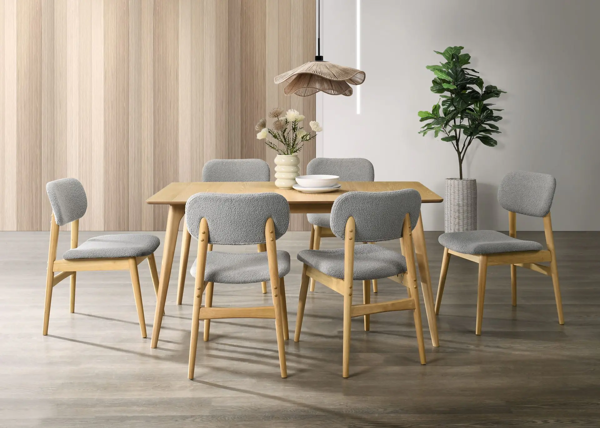 Vienna Natural Oak Veneer Table with 6 Grey Teddy Fabric Chairs