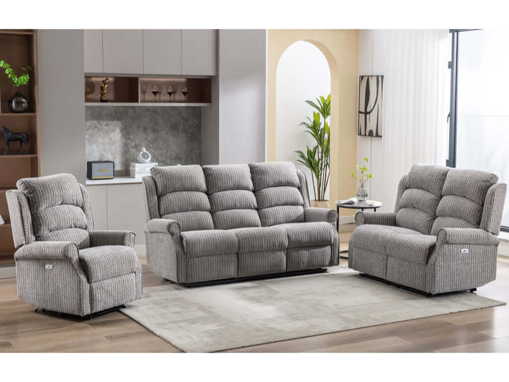 Experience comfort and style with the Windsor Electric 3+2 Sofa. This timeless sofa combines classic design with modern electric reclining functionality to let you find your ideal level of relaxation with a press of a button. With its high-rise back and robust frame, this sofa ensures superior support and long-term enjoyment. This modern designed sofa offers both comfort and luxury with its electric reclining function. Enjoy a timeless piece of furniture that will be sure to fulfil your lounging needs for years to come.Â